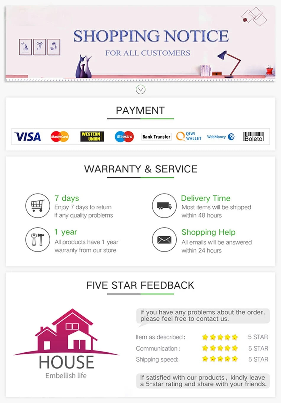 1. The actual color of the item may be slightly different from the displayed image, which is caused by many factors, such as the brightness of the display and the brightness of the light.